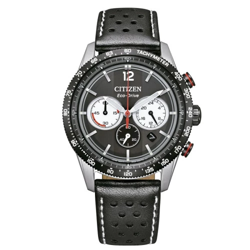 Reloj Citizen CA4717-06E ecodrive crono en acero y piel para hombre con color de esfera en negro, no más cambio de pila, reserva de carga 9 meses, garantía Citizen.