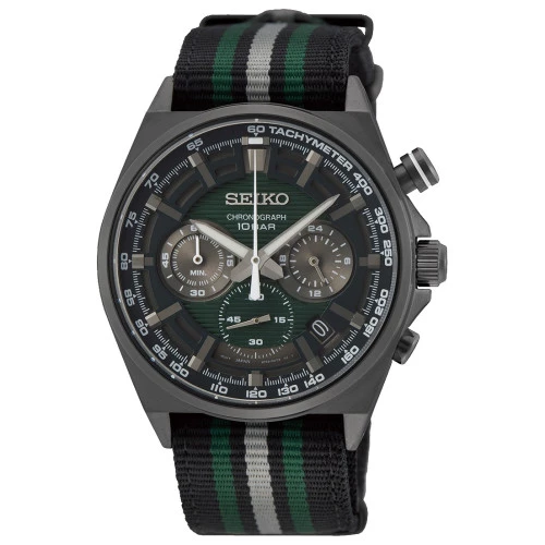 Reloj Seiko ssb411p1 para hombre cronógrafo en acero negro y nylon con esfera en negro, agujas en gris. Neo Sports 8t63, movimiento japonés, garantía Seiko